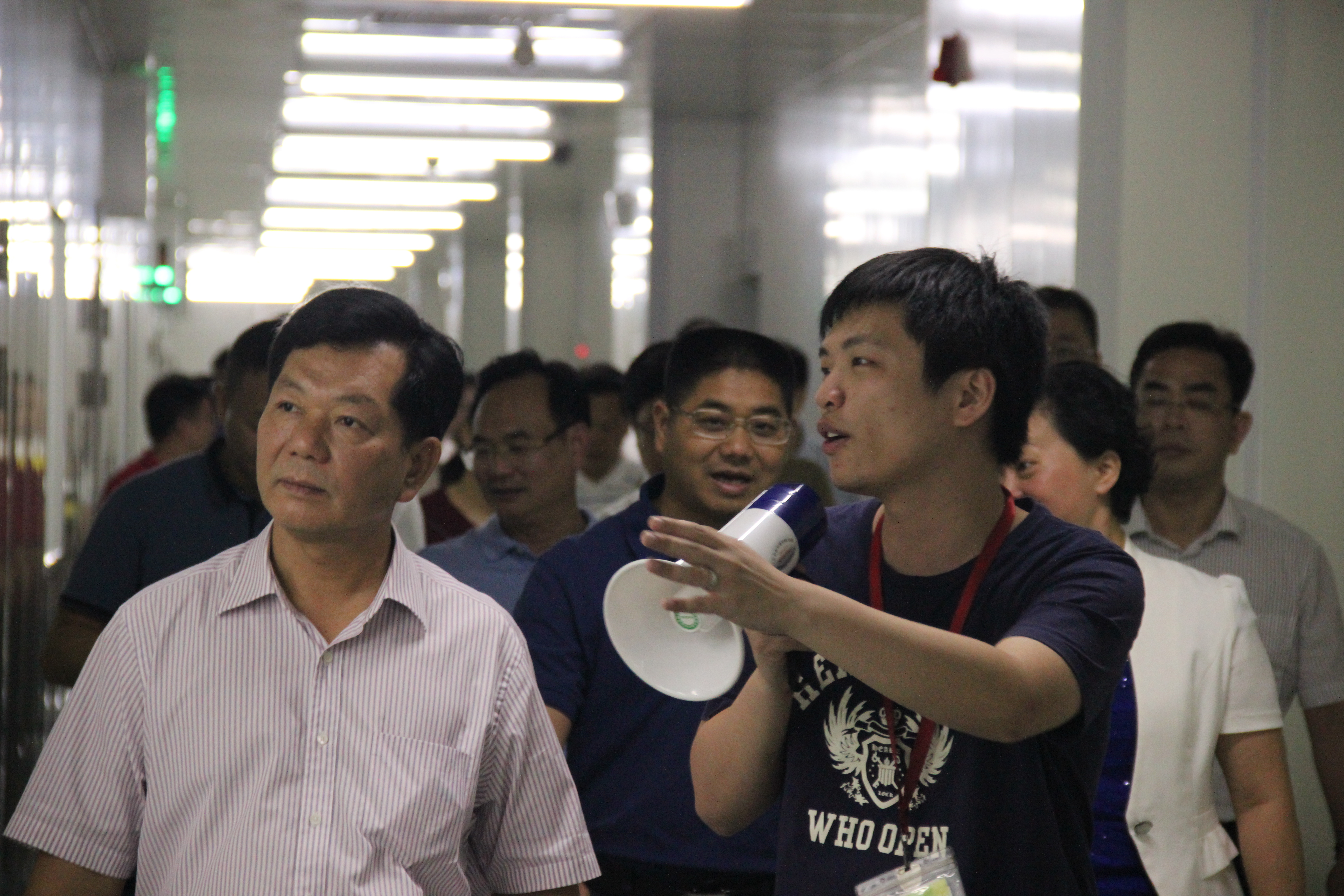 2016年7月19日上午,開平市市黨政領導班子一行80余人,在副市長、高新區黨工委書記、管委會主任、江海區委書記梁許贊和江海區委副書記、區長周惠紅等人員的陪同下,來到德力光電進行考察工作。